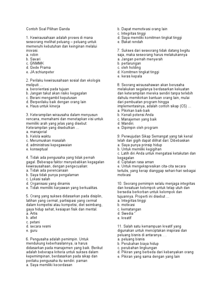 • Contoh Soal 1: Definisi dan Peran Wirausaha.